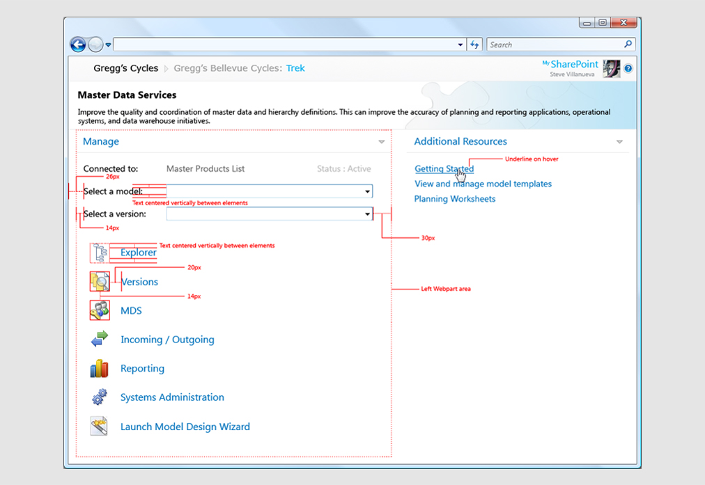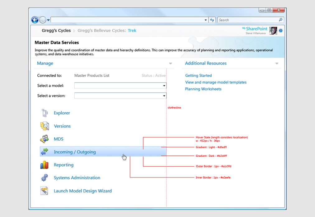 Microsoft defines Master Data Services as the ability to manage a master set of your organization's data. You can organize the data into models, create rules for updating the data, and control who updates the data. With Excel, you can share the master data set with other people in your organization. Originally purchased from a 3rd party by Microsoft, MDS was to be packaged as an option that would ship with SQL Server. Because the original team that developed the product had no design experience, the product as it was when purchased was extremely Web 1.0 in it's interface design (or lack thereof). SQL Group wanted to make MDS look as if it were a Microsoft Office product, and that's where I came in.