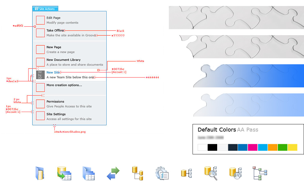 When putting together concepts for this new UI, I consulted closely with developers and artists from both the Microsoft Office Design Group and SQL Server with the intent to adhere to Microsoft's latest UI standards. Some of the tools required to do this were Photoshop and PowerPoint for creating assets and concepts, as well as ASP, .NET, JavaScript, and a lot of CSS and HTML. I used Visual Studio 2008 with TFS to implement my UI designs.