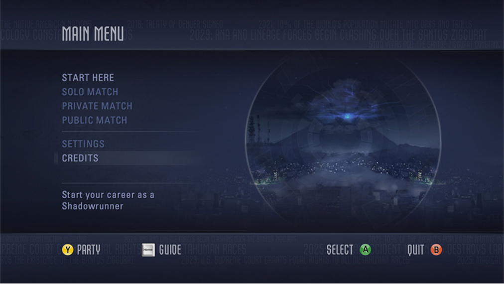 Shadowrun is a combination of science fiction and medieval fantasy with magic which is set in the late 21st century. This version of Shadowrun is just one iteration of a game that spans over 25 years and has quite a cult-following. This iteration breaks barriers in that it's the first of it's kind first-person shooter, and included the first-ever game released on both PC and Xbox 360 where both platforms can play each other. Another method by which this game broke the norms was the fact that it was shipped without a single player mode. The game was multi-player only and required broadband connectivity to the Internet.